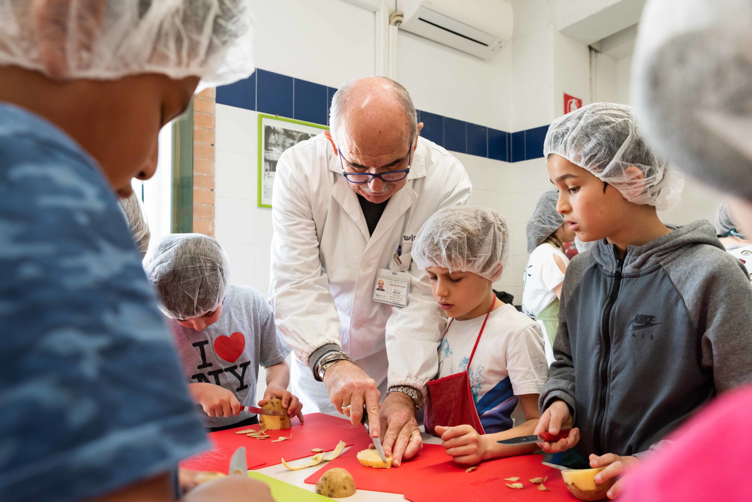 Partendo dunque da quel che per convenzione avrebbero forse gettato, dotati di istruzioni, grembiuli e cuffie, offerti da Siaf, i bambini hanno preparato succulenti ricette, nelle cucine e con l’aiuto del direttore e dei cuochi aziendali. Perchè recuperare e fare con le proprie mani è la migliore educazione possibile.